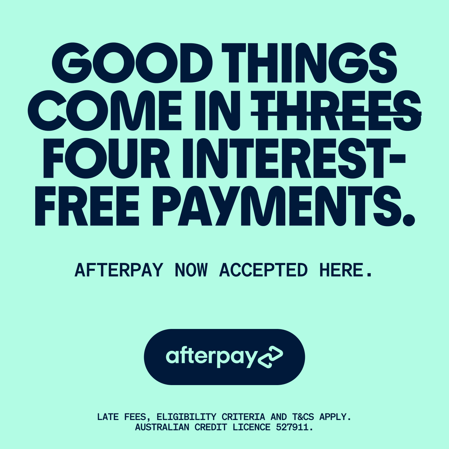 Afterpay when you check out, then pay it in 4 interest-free instalments.*